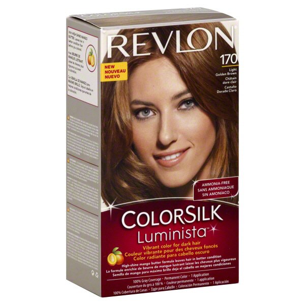 Revlon colorsilk luminista 170 light golden brown is a light brown shade with golden tones designed for dark hair by revlon colorsilk luminista.